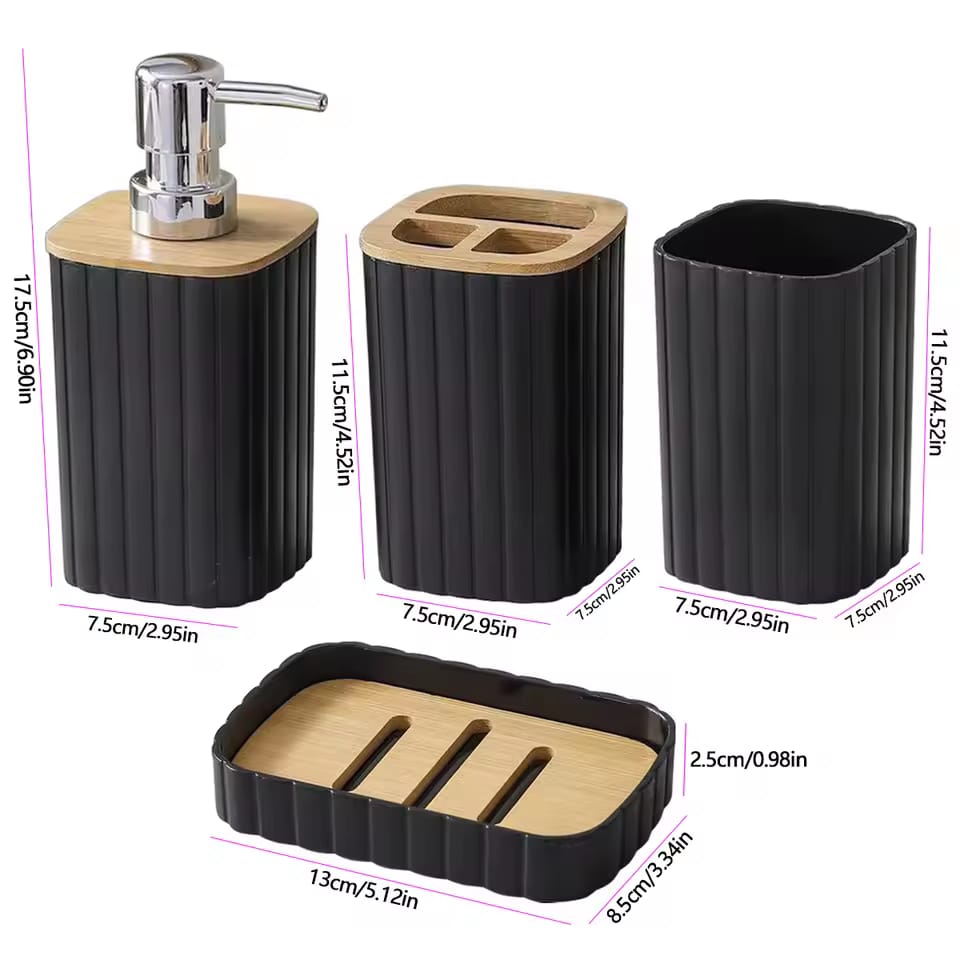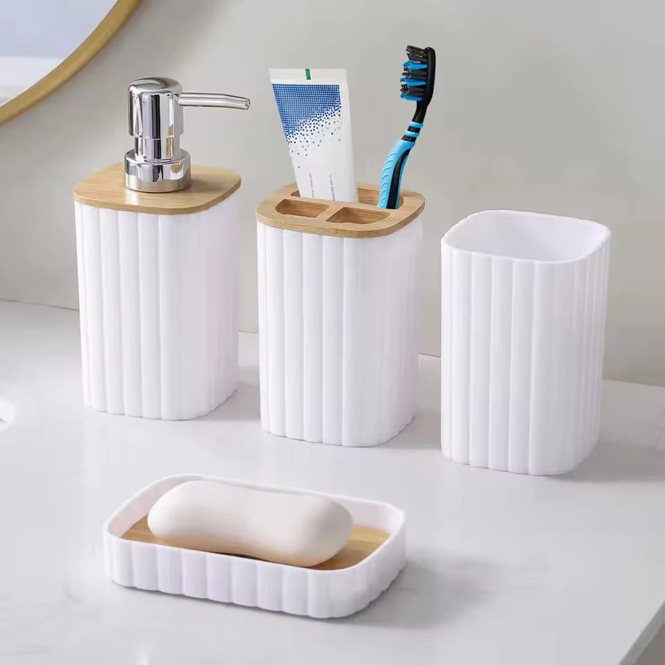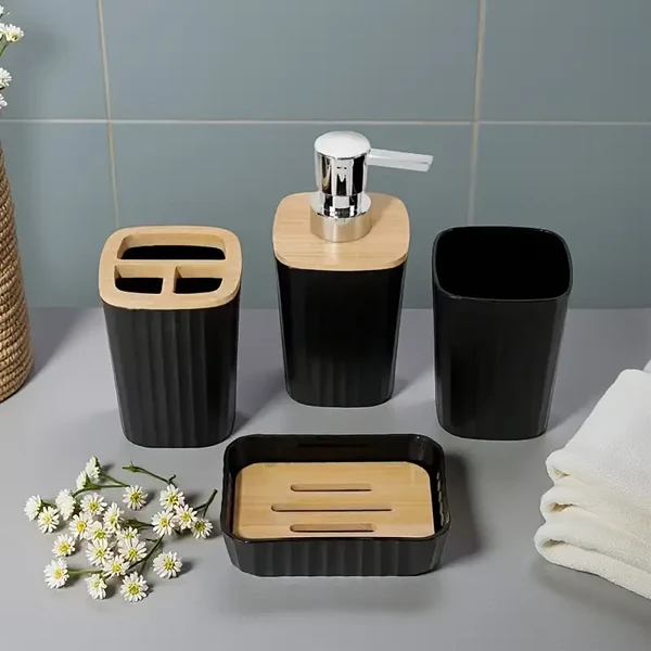 4 Pcs Bamboo Bathroom Accessories Set