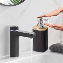 This set will be a great addition to your bathroom, combining practicality and style. The black color brings a neat and classic look, and the simplicity of the forms makes it universal for any design. Update your bathroom with this elegant and functional set!