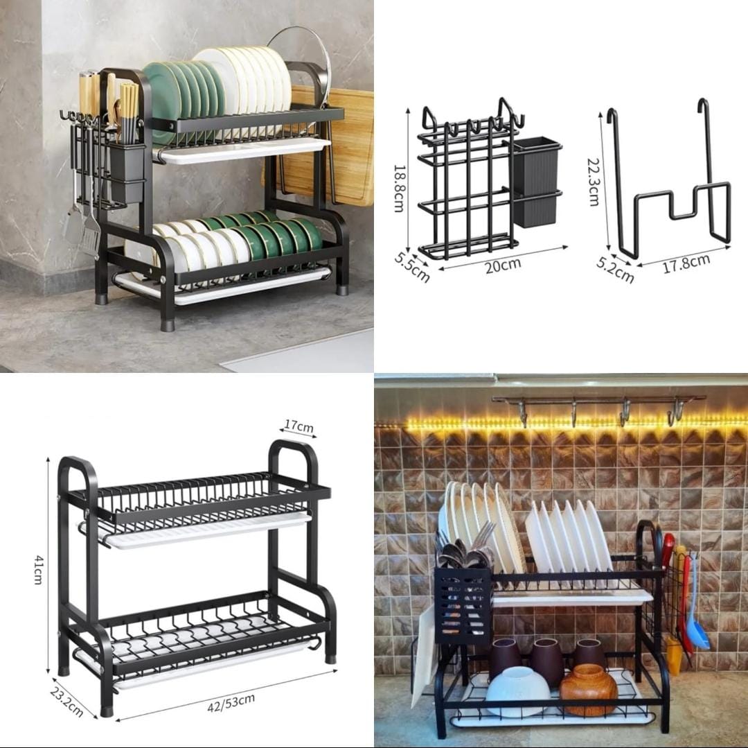 1.Double layered design frees up counter space and is perfect for when you have limited counter space and need lots of storage. This dish strainer features individual slots for plates, cups, bowls and cutlery.