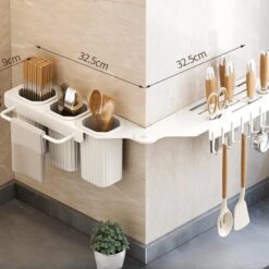 Upgrade your kitchen with this luxury over-the-sink kitchen organizer rack, designed to maximize space while keeping your essentials neatly arranged. This modern multi-function rack provides dedicated compartments for utensils, knives, cutlery, and tools — transforming clutter into a clean, elegant workspace.